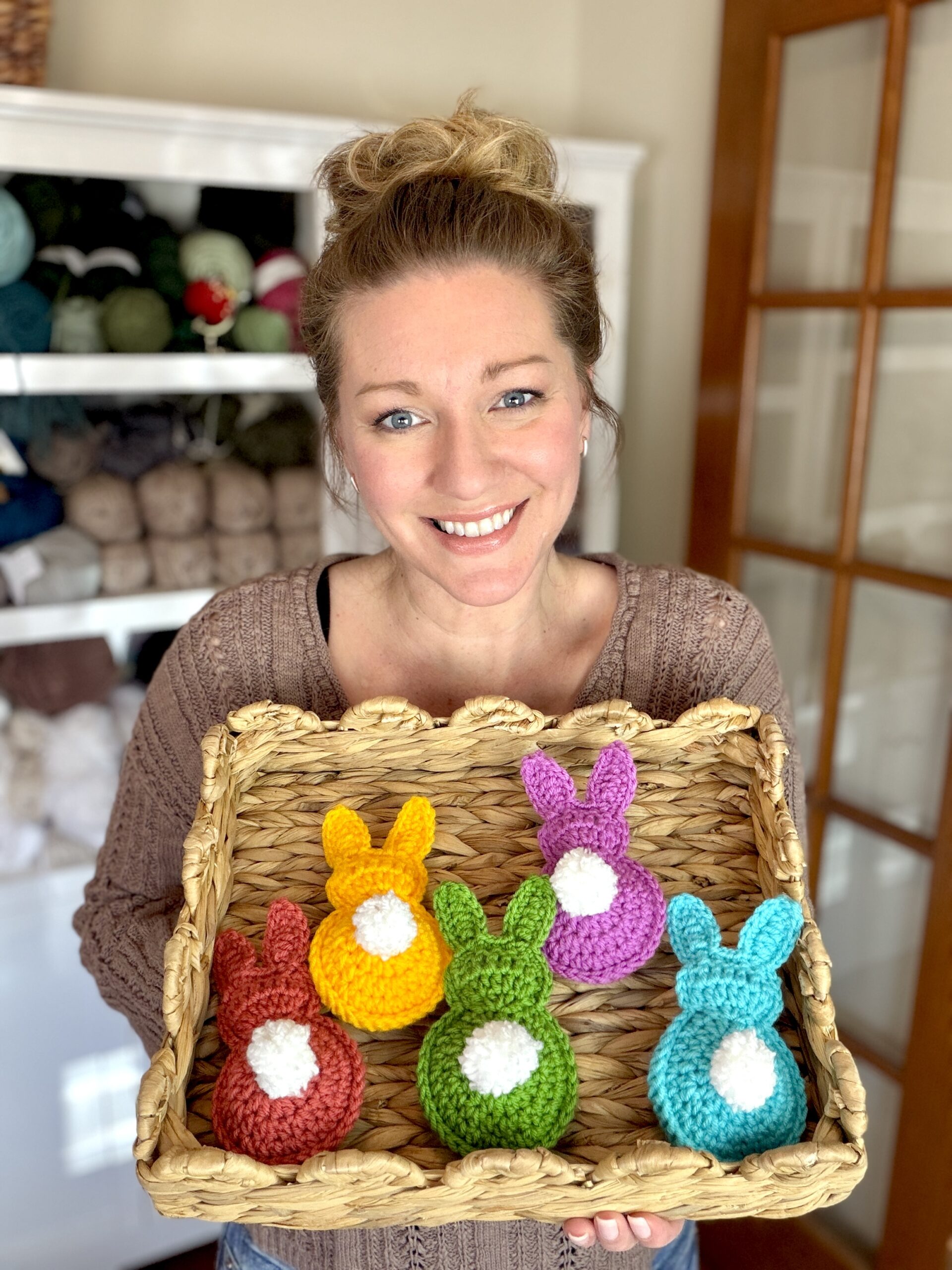 April, 2020: Hippity, hoppity, Easter’s on its way! In less than two weeks to be exact. We typically travel to PA to be with family for spring break and Easter so I don’t really decorate our house much beyond a wreath on the front door. When I realized we would most likely be spending Easter at home this year due to the pandemic, I knew I wanted to make things a little more festive for the kiddos. Crochet to the rescue!