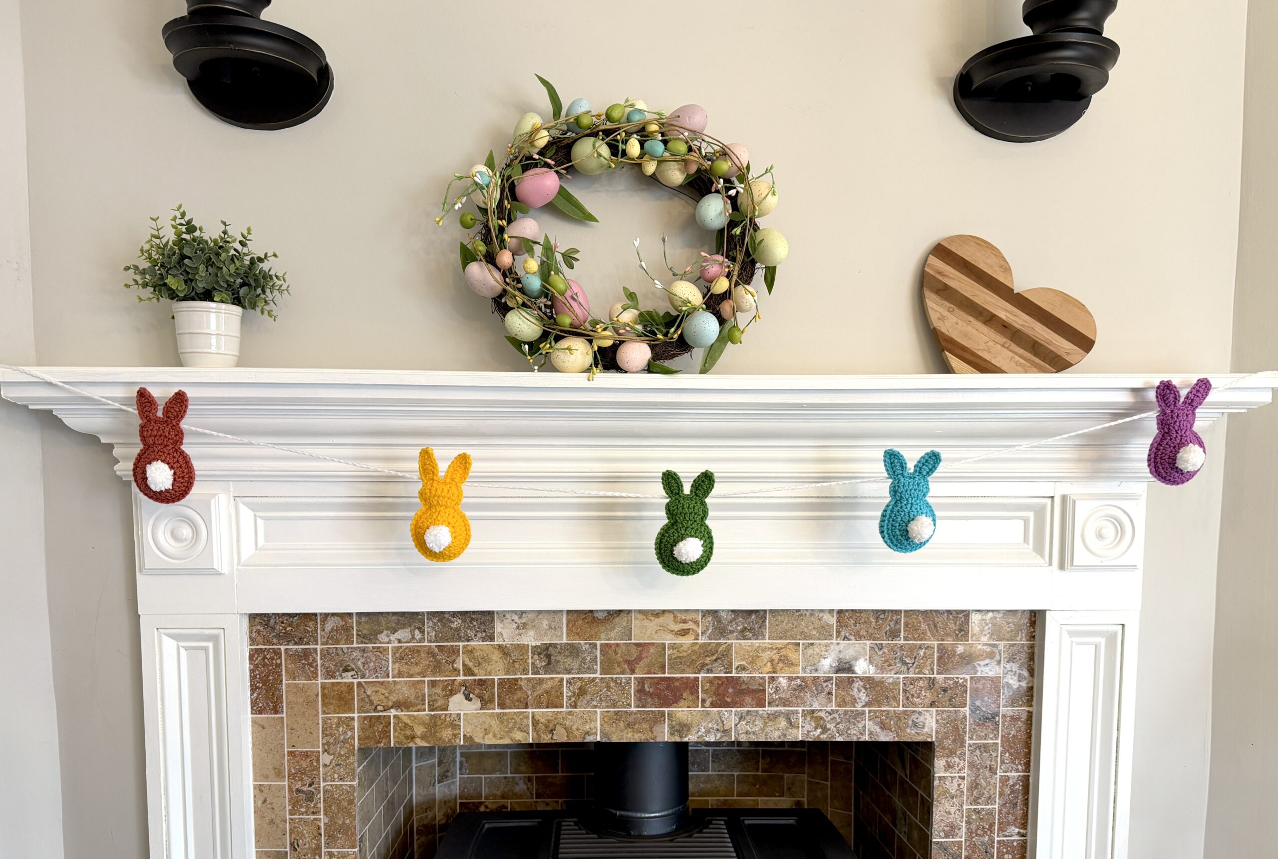 I recently remade this Easter Bunny Garland using Brava Worsted yarn from Crochet.com, and I absolutely love how it turned out! My original garland was made with scrap yarn, but recreating it with Brava made it easy to get a cohesive look and there are so many colors to choose from!
