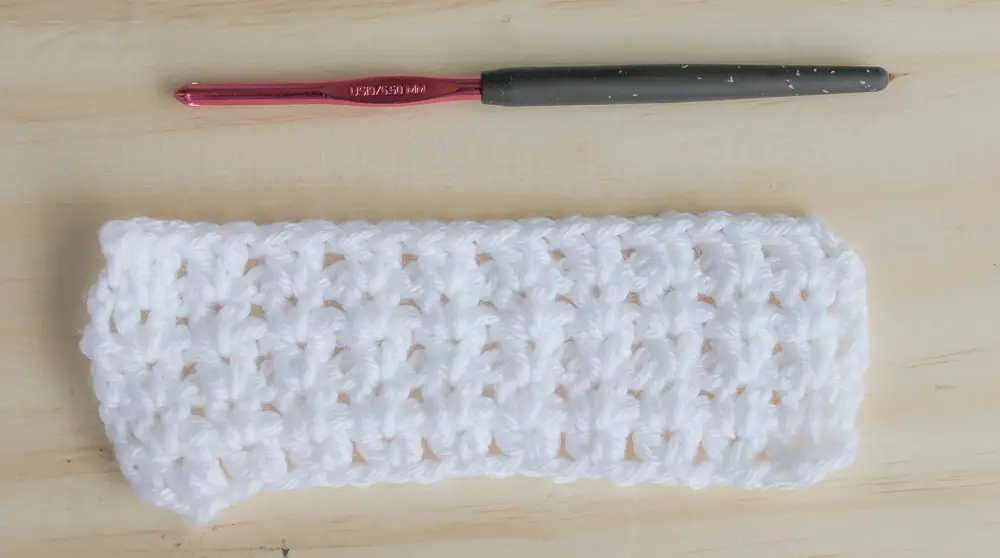Start by making a chain of any EVEN number. Row 1: In the 4th chain from the hook, make 2 DC. Skip the next chain, *2 DC in the next ch, sk next chain. Repeat from * across the row, finishing with 1 DC in the last chain. Ch 3 and turn (this counts as your first DC)
