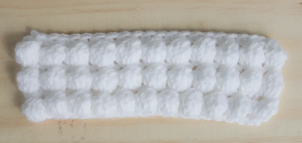Row 3: SC in each stitch across, making sure your first Sc is in the top of the bobble from the row below.